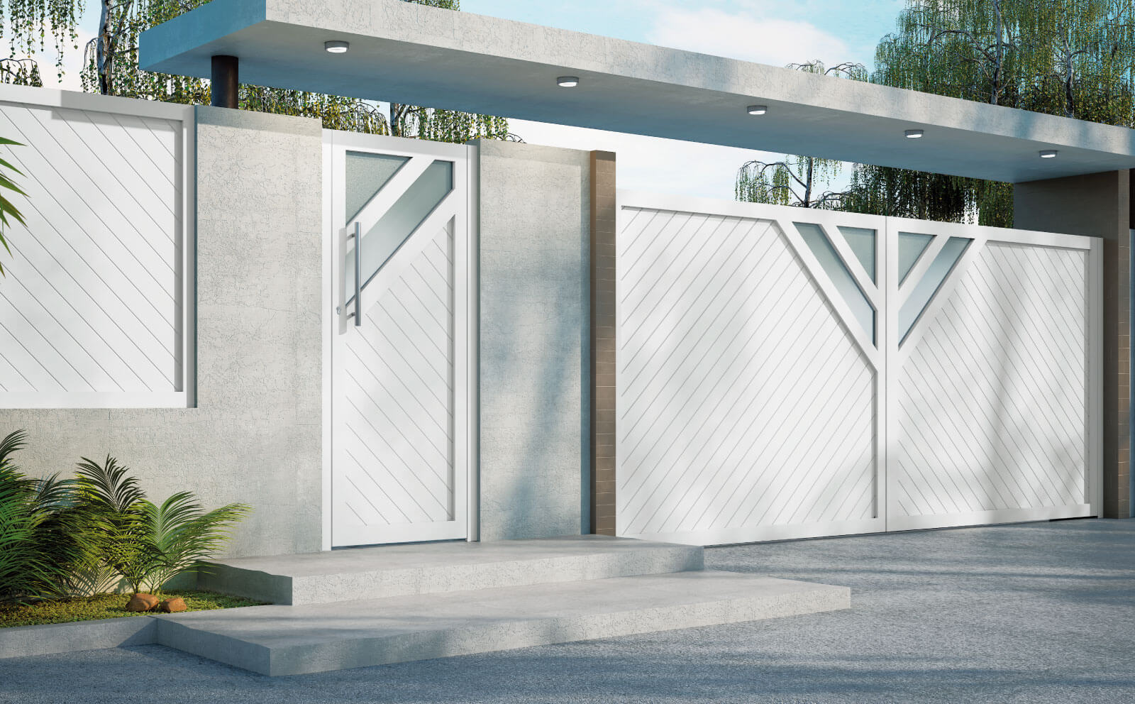 Compuesta por líneas diagonales y detalles de vidrio que logran gran armonía. Modelo que destaca porque sus lamas diagonales pueden ser desmontables, consiguiendo así, un lacado más homogéneo de la misma.